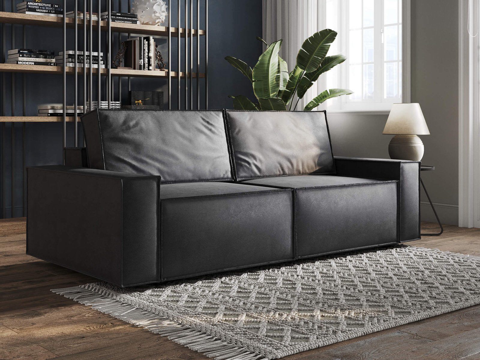 Диван Loft с механизмом трансформации «Пантограф». В основе дивана полноценный ортопедический матрас на независимом пружинном блоке, усиленном слоем натуральной латексированной кокосовой койры. Комфортная глубина и высота сиденья обеспечит ежедневный комфорт. Декоративный кант подчеркивает прямые и геометричные формы, придает строгость. Задняя спинка защищает от прикосновения со стеной во сне, а стену – от возможных повреждений и загрязнений. В основе мягких подушек – микс наполнителей: поролоновая крошка защищает от деформации, а синтетическое волокно добавляет мягкость и упругость – для бережной поддержки спины. Подушки убираются во вместительный бельевой ящик с вентиляционным отверстием в разложенном состоянии дивана.