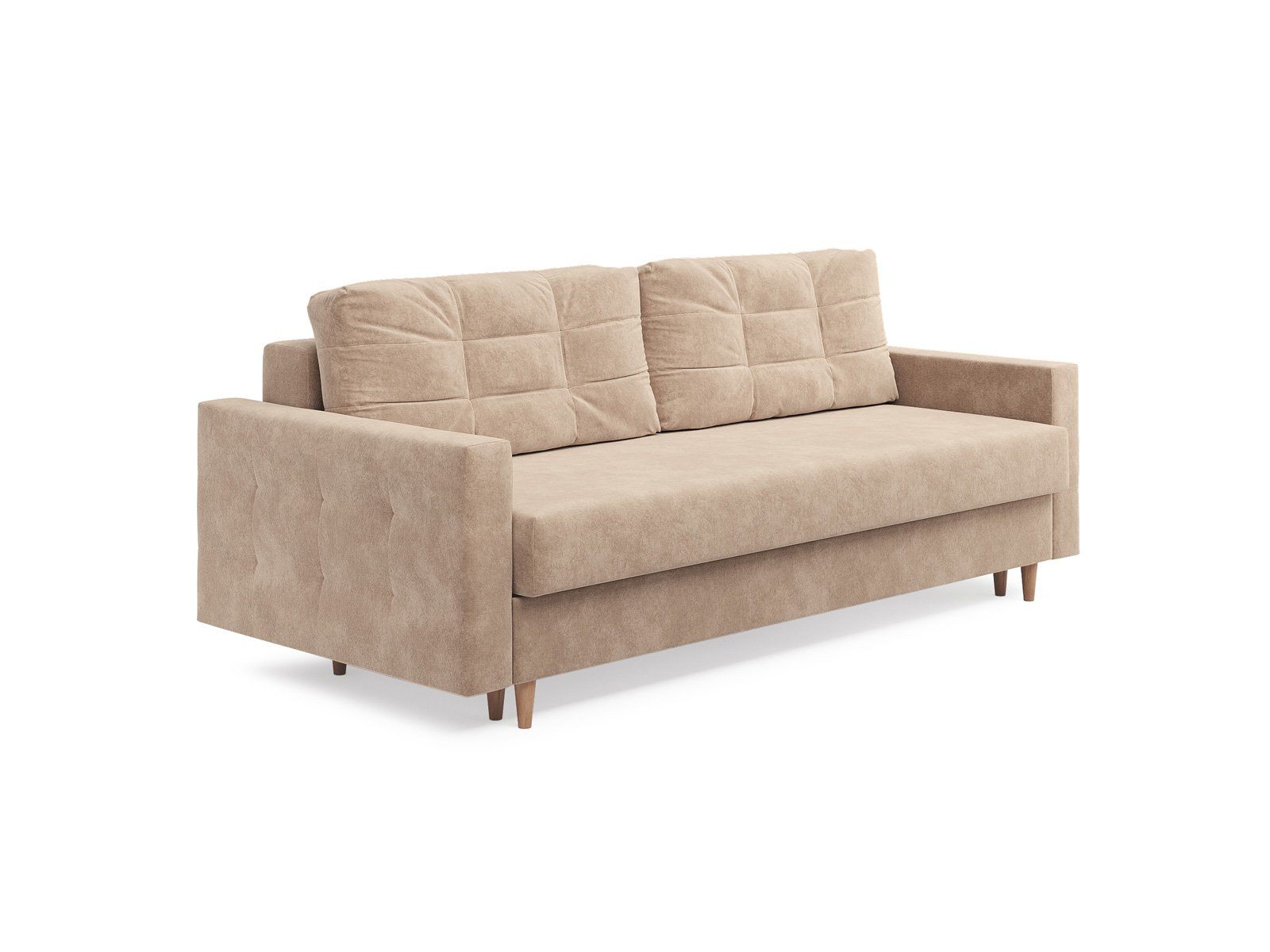 Современный диван Scandy с механизмом трансформации «Пантограф». В основе дивана полноценный ортопедический матрас на независимом пружинном блоке, усиленном слоем натуральной латексированной кокосовой коры. Комфортная глубина и высота сиденья обеспечит ежедневный комфорт. Задняя спинка защищает от прикосновения со стеной во сне, а стену – от возможных повреждений и загрязнений. В основе мягких подушек – микс наполнителей: поролоновая крошка защищает от деформации, а синтетическое волокно добавляет мягкость и упругость – для бережной поддержки спины. Подушки убираются во вместительный бельевой ящик с вентиляционным отверстием в разложенном состоянии дивана. Высокие элегантные опоры из массива (цвет на выбор - бук или венге) упростят уборку и позволяют работать современным роботам-пылесосам.