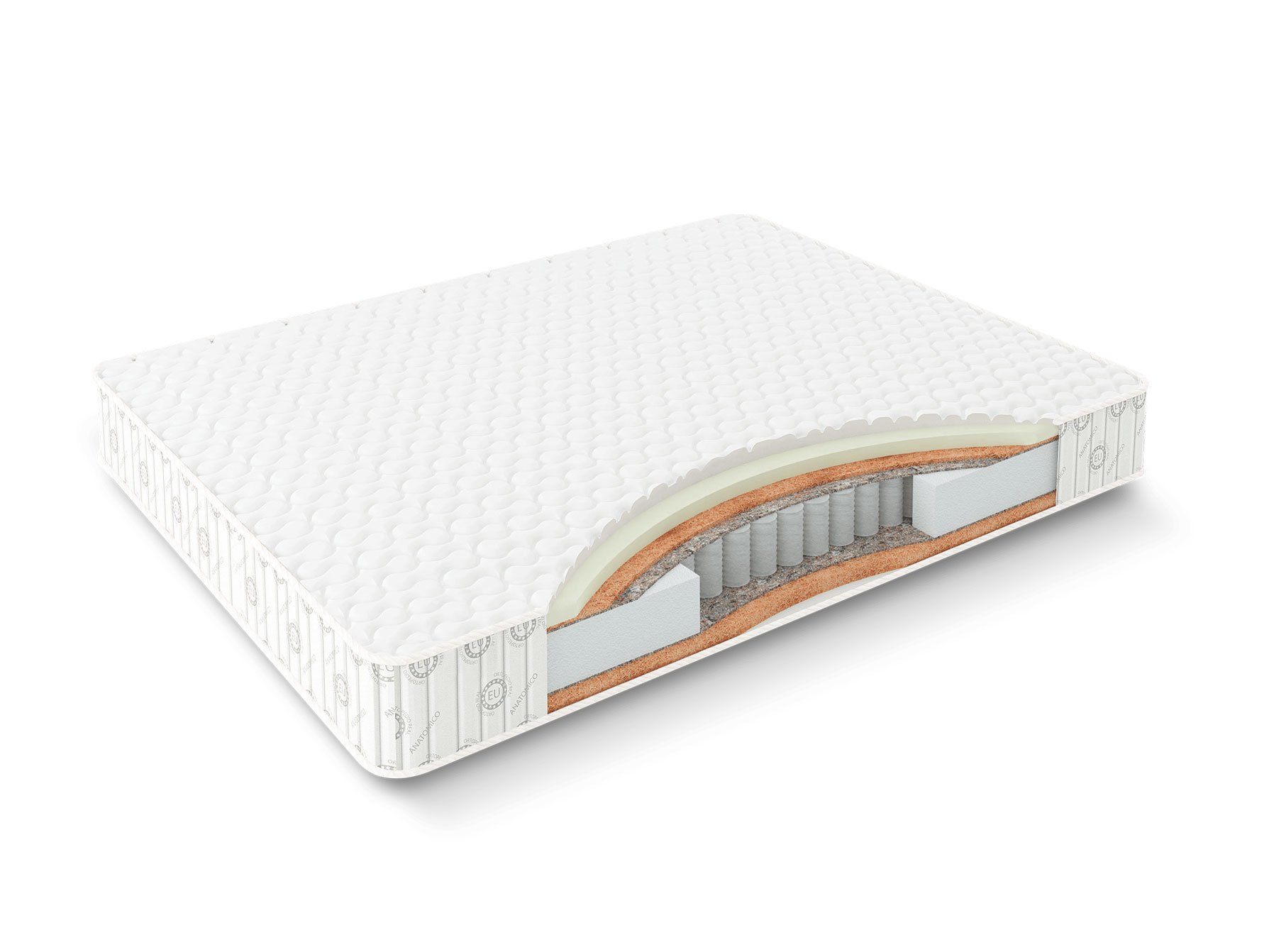 Сверху матраса проложена комбинация из натуральных латекса и кокоса. Эта поверхность более мягкая и адаптивная. Снизу модели установлена одна лишь толстая плита койры кокоса, поэтому данная сторона отличается более высокой жёсткостью.