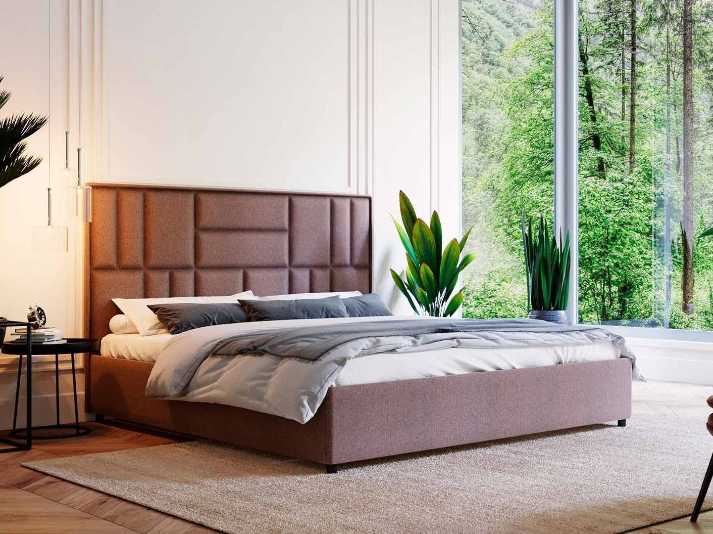 Кубо — кровать в современном стиле. Изюминка модели — высокое мягкое изголовье, украшенное стяжкой в виде сложного геометрического узора. Модель отлично впишется практически в любую спальню — лаконичный декор подходит для классических и современных интерьеров.