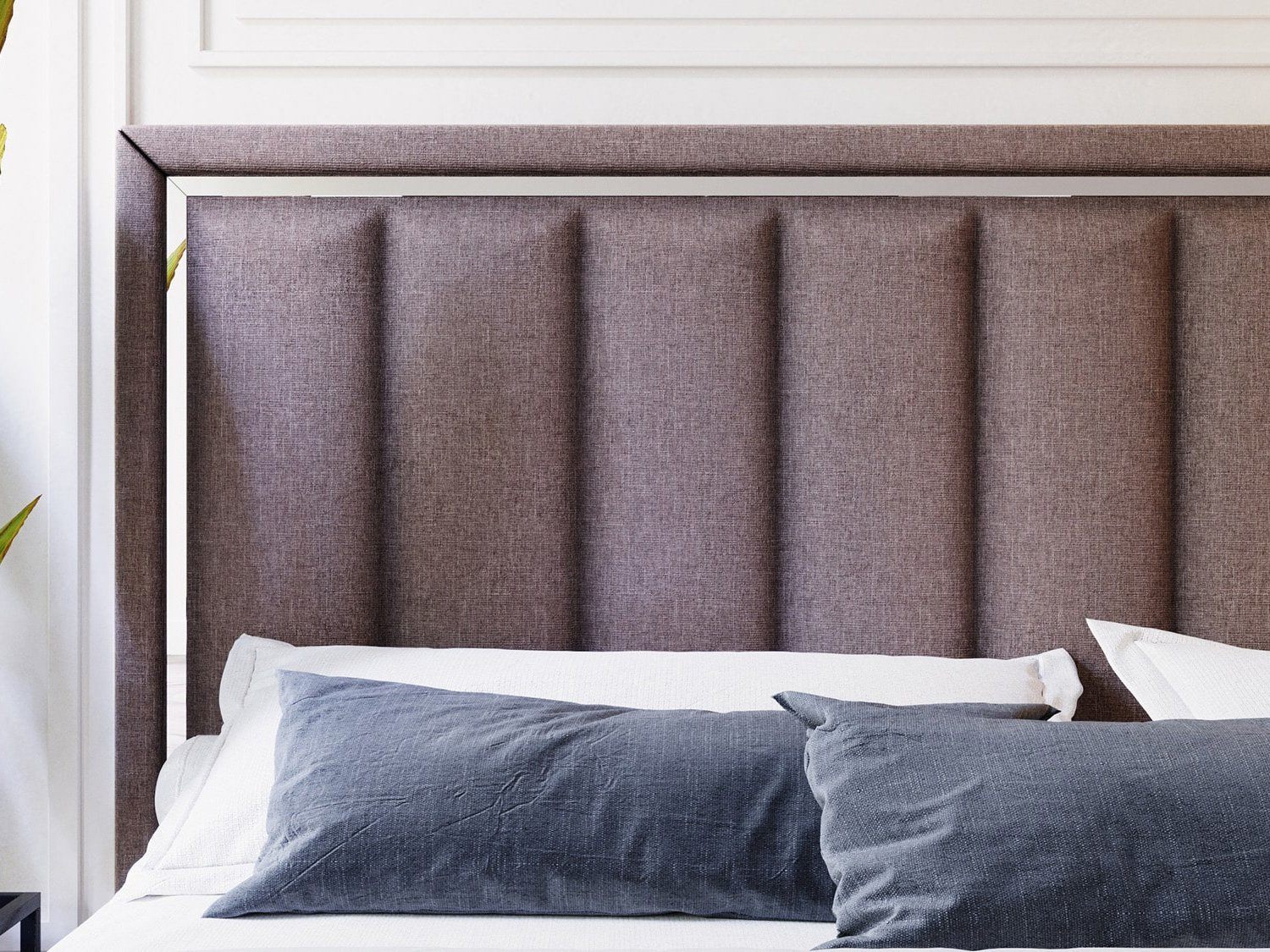 Вивальди — изящная кровать в современном стиле. Изюминка модели — высокое мягкое изголовье с вертикальными стяжками и зеркальной вставкой по периметру, которая создает яркие блики на свету.