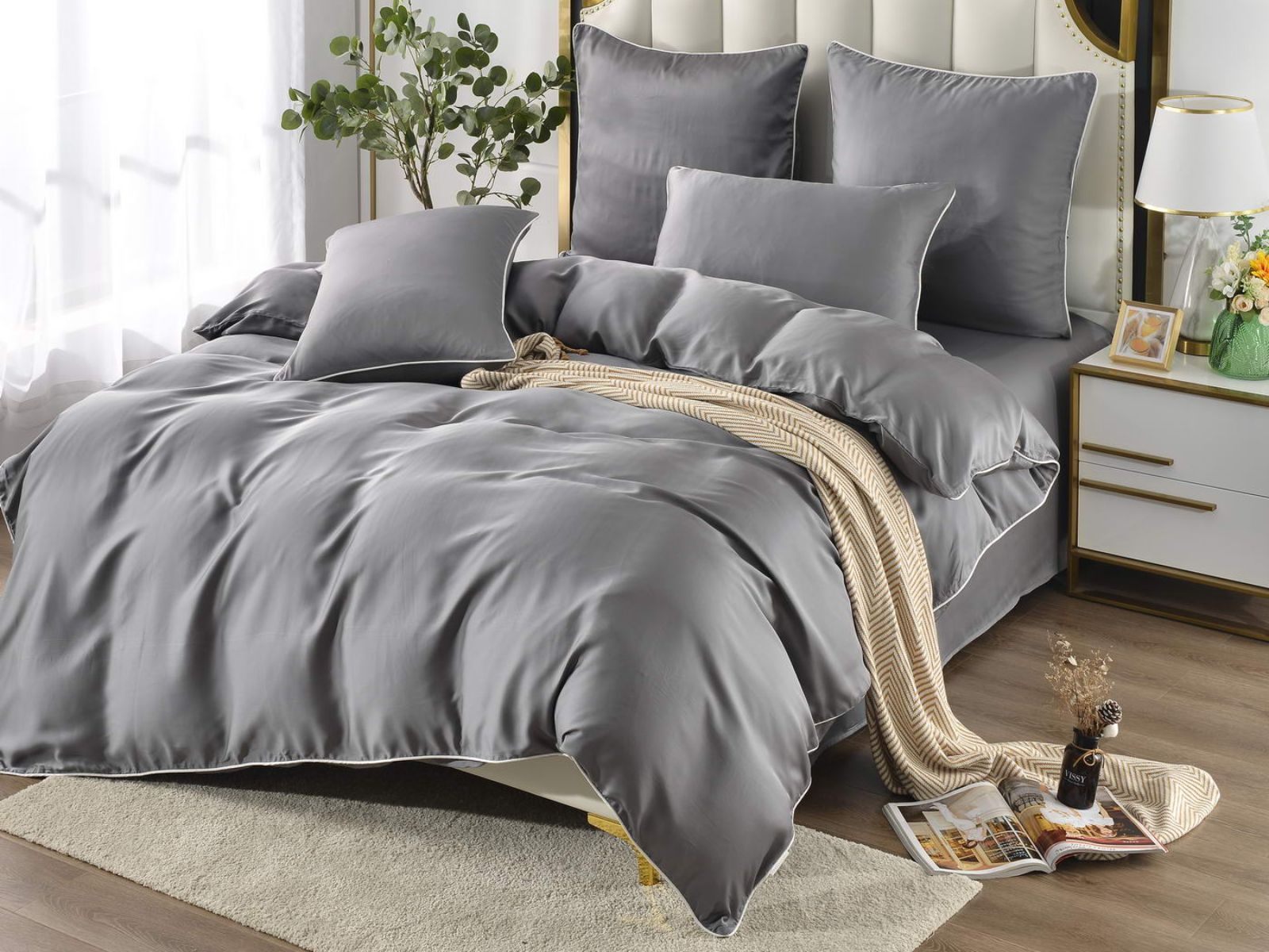 Тенсел – это натуральная ткань из эвкалиптового волокна. На ощупь тенсел напоминает шелк – он такой же легкий и гладкий. Постельное бельё из такой ткани обладает хорошей терморегуляцией, поэтому его можно использовать в любое время года – не будет жарко или холодно. На данный момент, тенсел пользуется большой популярностью во всем мире.