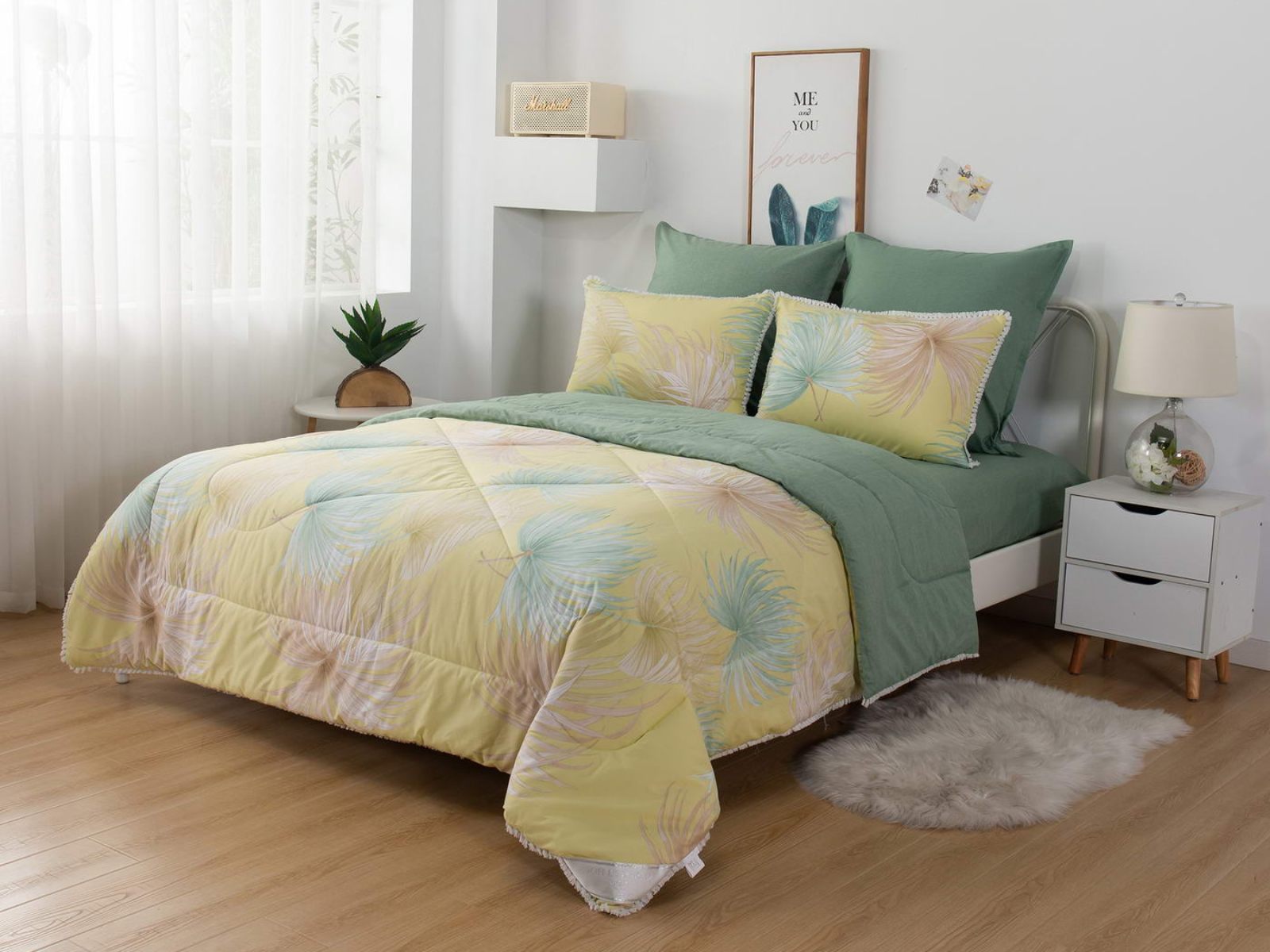 Набор с одеялом прослужит вам достаточно долго без потери своего качества, а рисунок не потускнеет даже после стирок. Комплект легко стирается в обычной машине и также легко гладится.