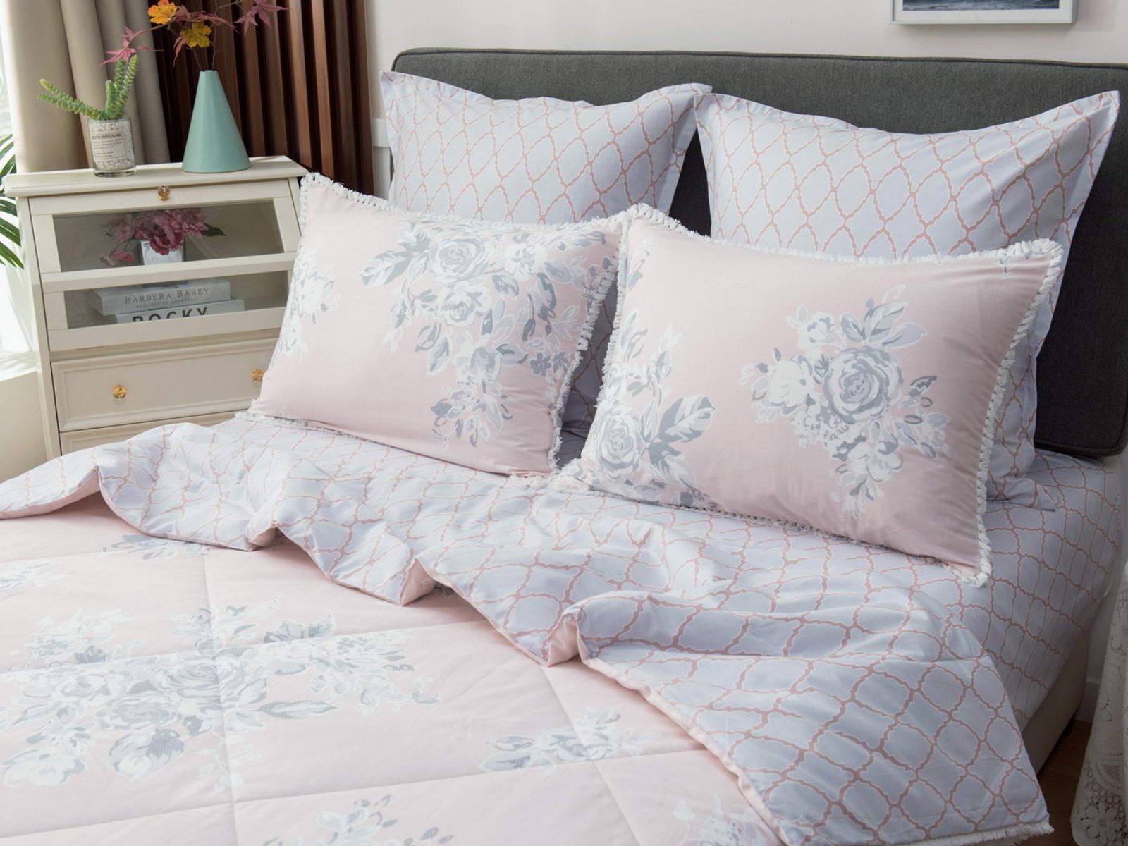 В комплекты комфортеров с одеялом Бернадетт входят наволочки, простыня и легкое всесезонное одеяло. Оцените это современное и очень удобное решение, которое идеально подходит тем, кто не любит возиться с пододеяльниками.