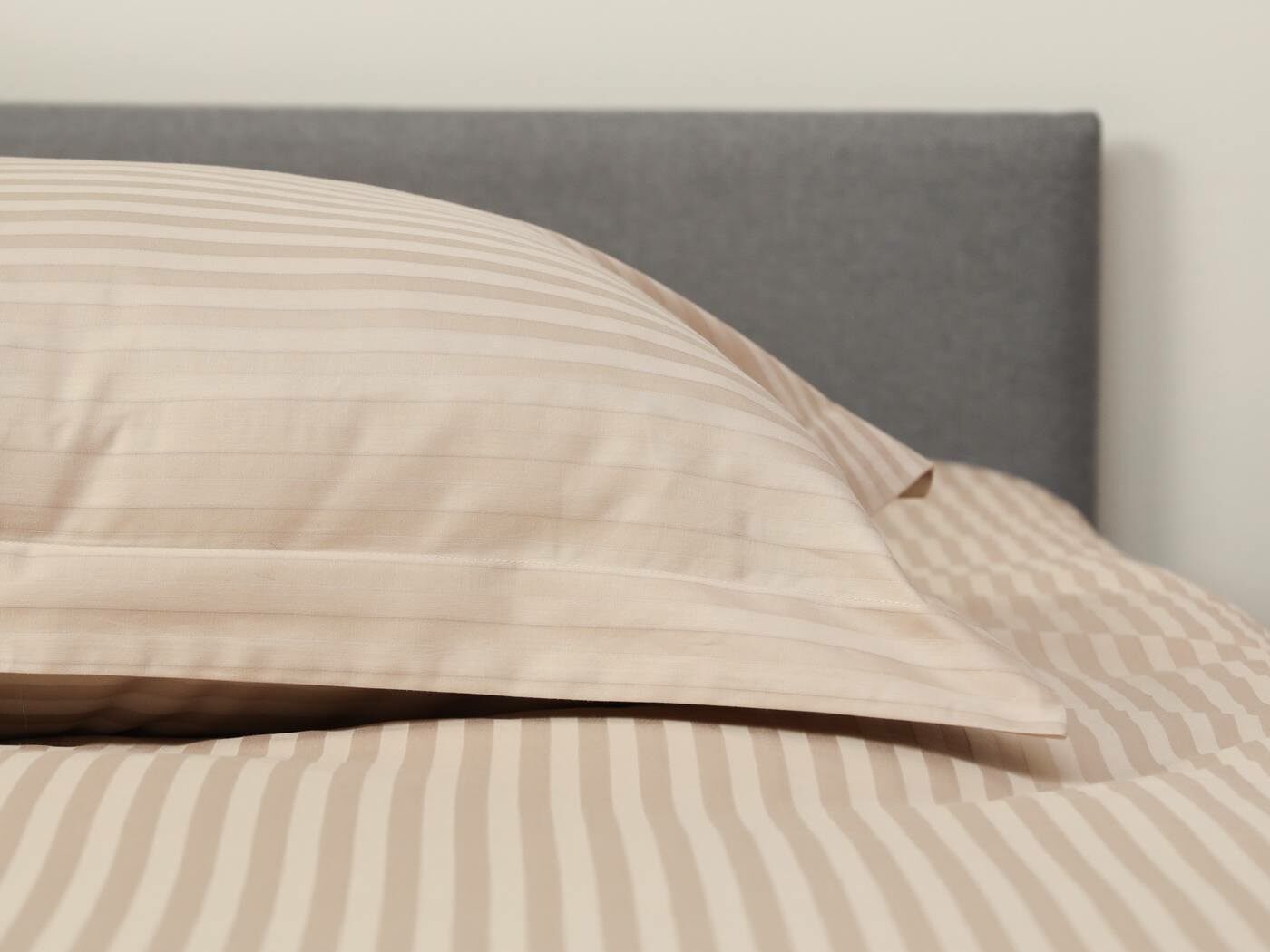 Это постельное белье с одеялом, которое не надо вставлять в пододеяльник. Комплект выполнен из качественной и натуральной хлопковой ткани. Эта ткань сочетает в себе мягкость и прочность, обеспечивая незабываемые ощущения во время сна. Жаккардовое плетение создает однотонный рисунок с элегантными чередующимися глянцевыми и матовыми полосками шириной 1 см, что привнесет вашему интерьеру изысканный вид. Такое плетение нитей придает долговечности ткани и потому используется в хороших отелях.