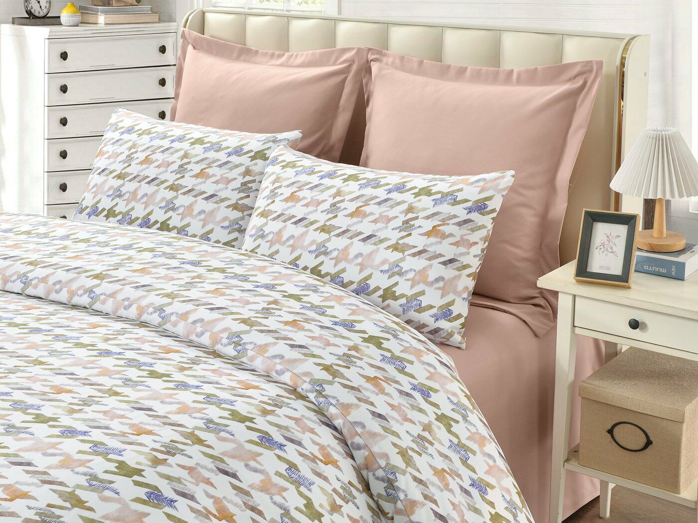 Пошив: пододеяльник на пуговицах, наволочки с клапаном.