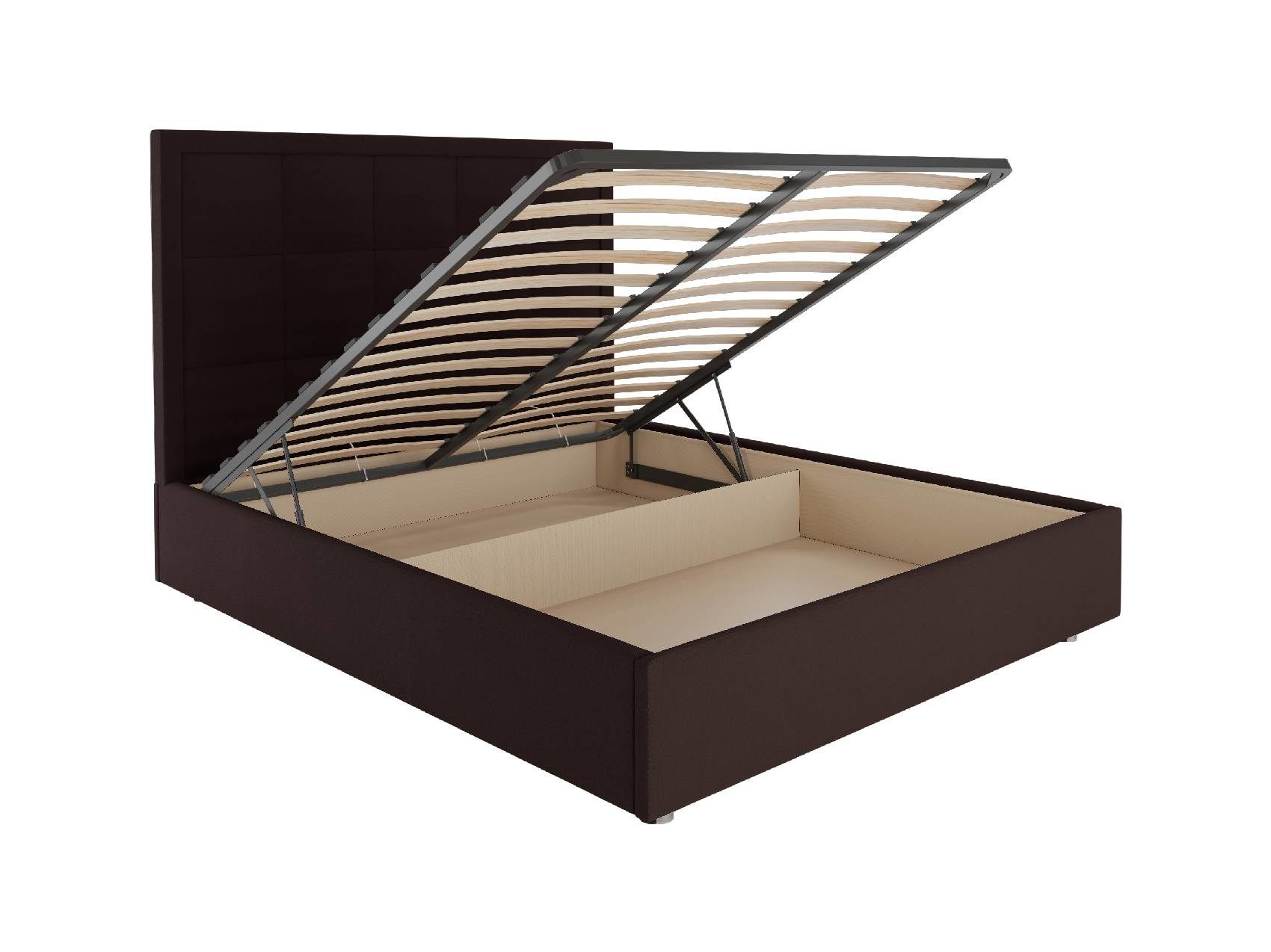 В комплектации с подъемным механизмом кровать имеет вместительный бельевой короб с двумя отделениями.