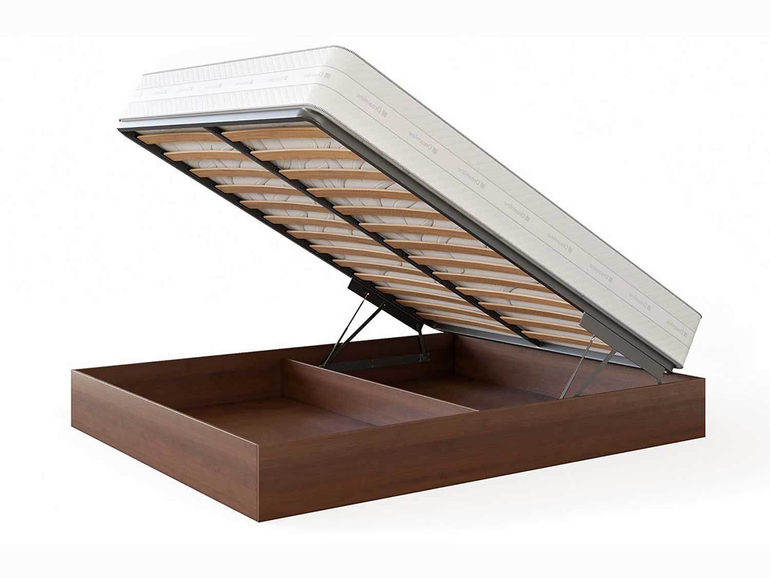 Кровать Куб представляет собой металлическое основание с ламелями из березового шпона и ящик для белья, которые соединены специальным механизмом подъема, который рассчитан под вес матраса. Ящик изготавливается из мягколиственных пород древесины (МЛПД). Стандартно предусмотрено основание Dream. Требуется сборка. Внешние габаритные размеры: - 4 см по длине и ширине.