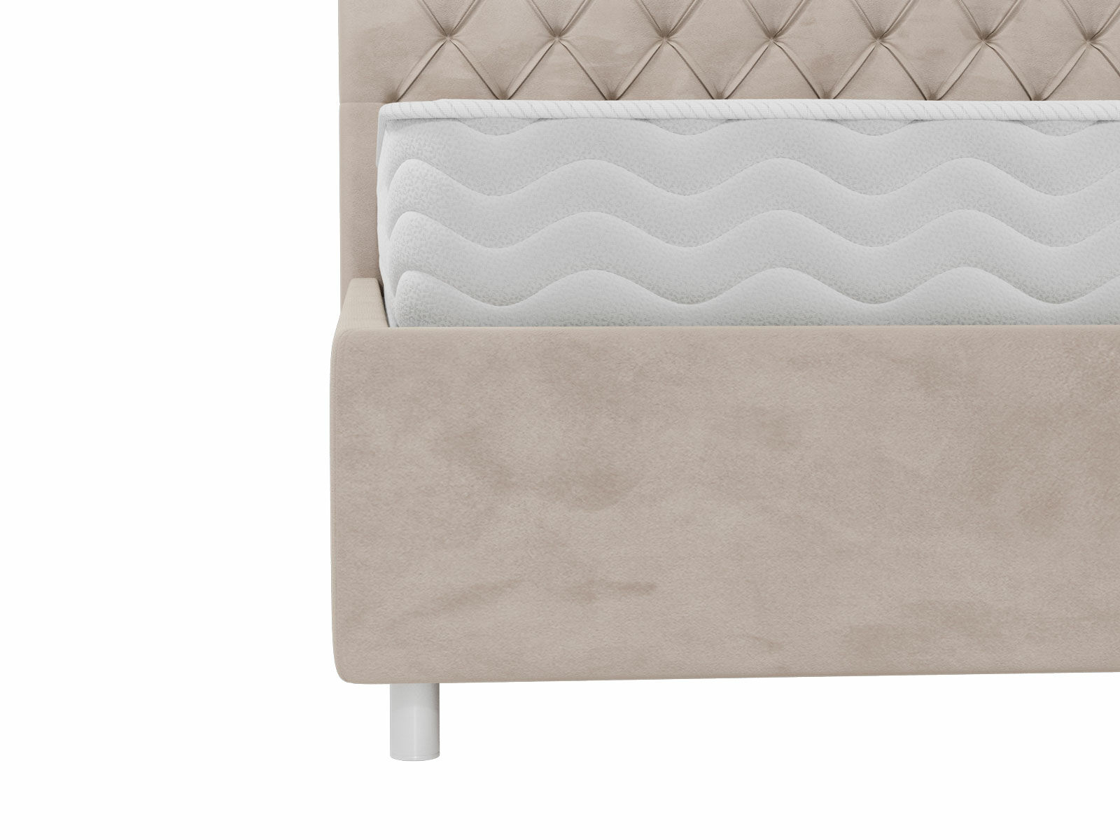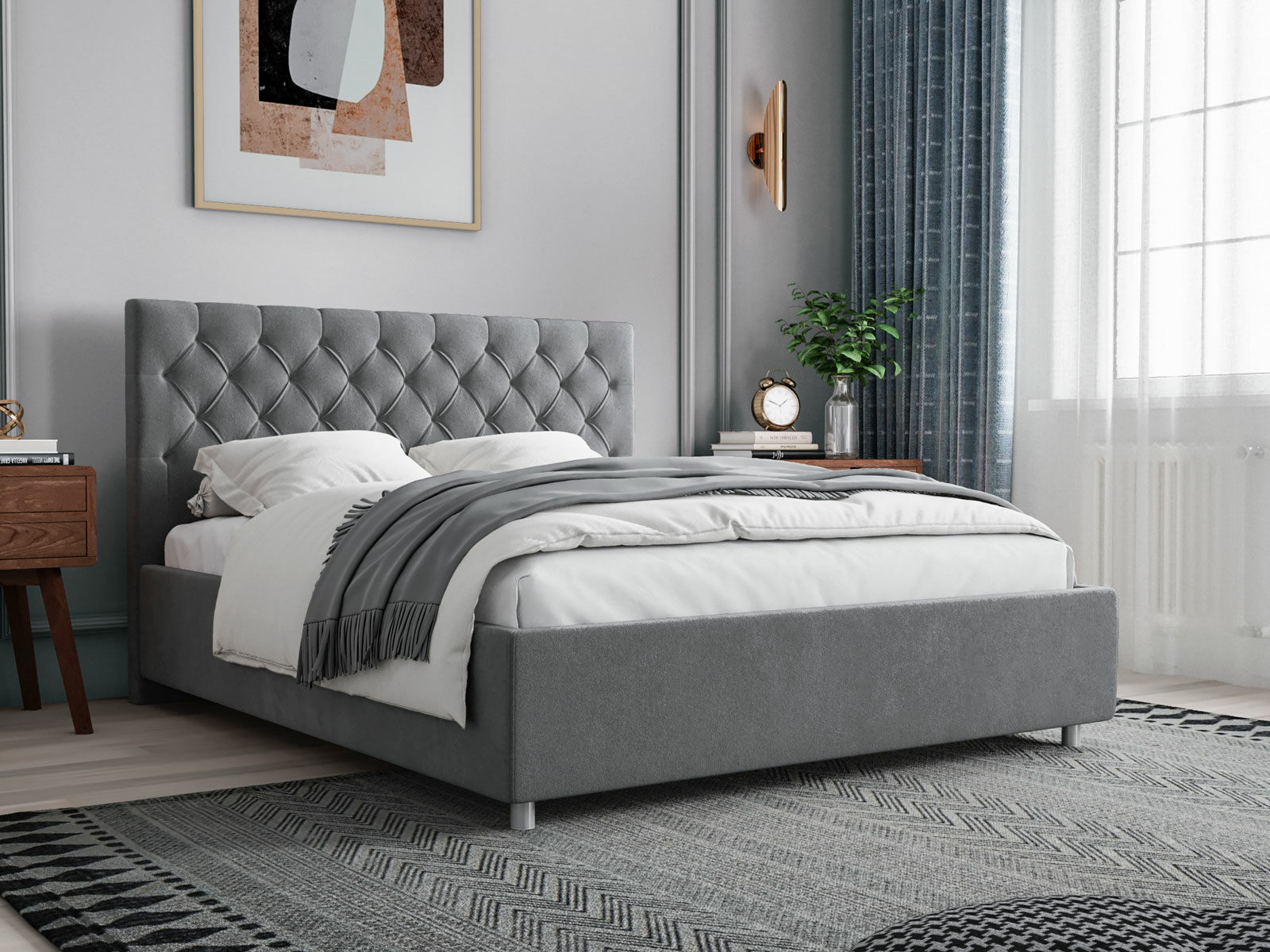 Продуманный дизайн спинки украсит минималистичный и классический интерьер. Классическая каретная стяжка на изголовье привлекает внимание и делает её невероятно эстетичной и изысканной.