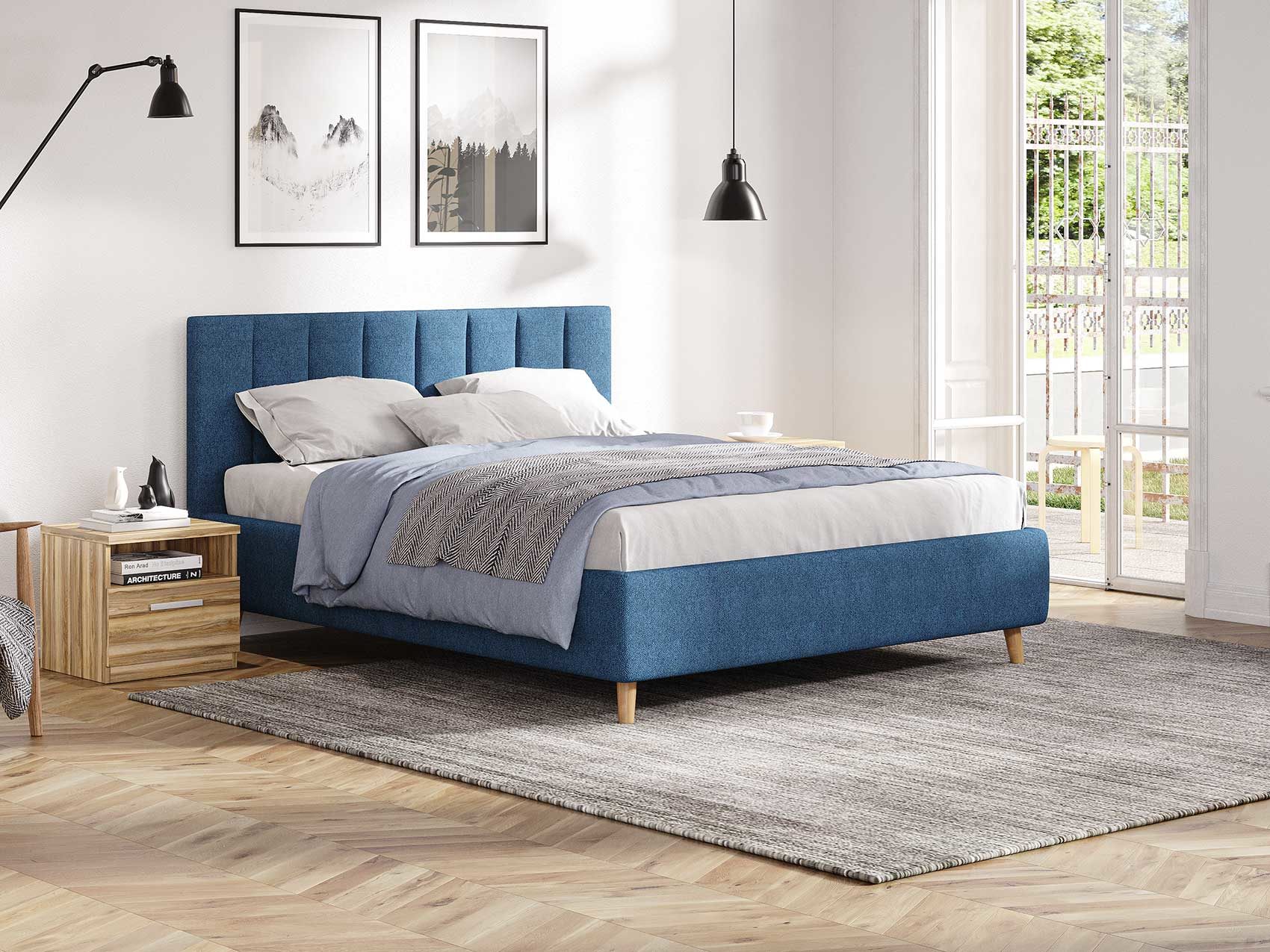 Кровать Alma подойдет для современных интерьеров спален, а благодаря деревянным ножкам впишется в стиль ретро, скандинавский или минимализм.