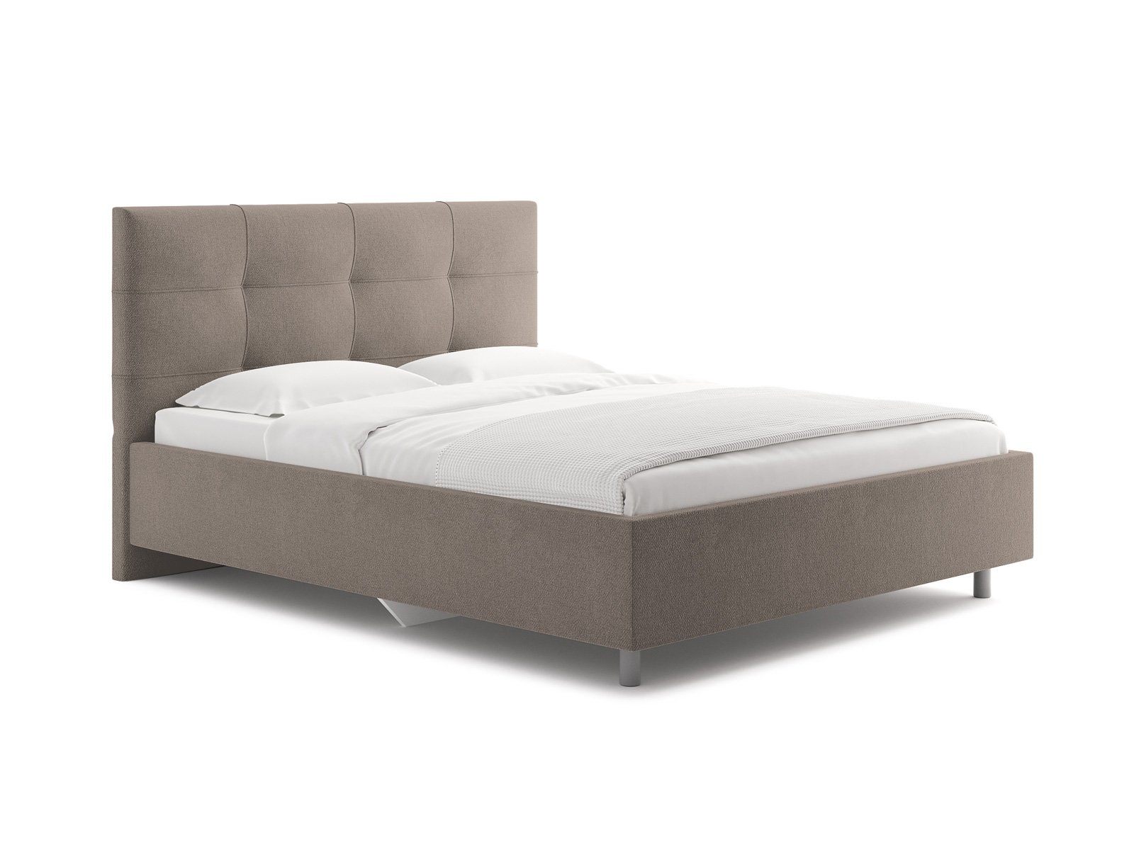 Современная кровать с эффектным декоративным кантом. Модель изготовлена из ДСП. При необходимости кровать может быть укомплектована подъемным механизмом с бельевым ящиком или трансформируемым основанием Aquarius (размером 160-200).