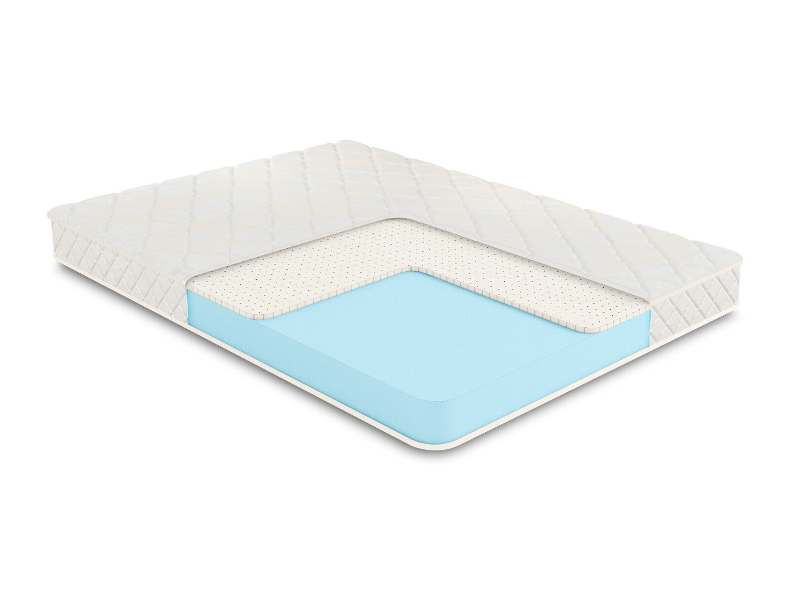Внутри матраса расположились два наполнителя – натуральный латекс и пена Ecofoam. Латекс делает одну из поверхностей более адаптивной и анатомичной. Гибкость и эластичность этого материала хорошо известны, именно благодаря ним латекс передаёт стороне повышенный комфорт. Он играючи подстраивается под особенности фигуры, обеспечивая тем самым быстрое расслабление.