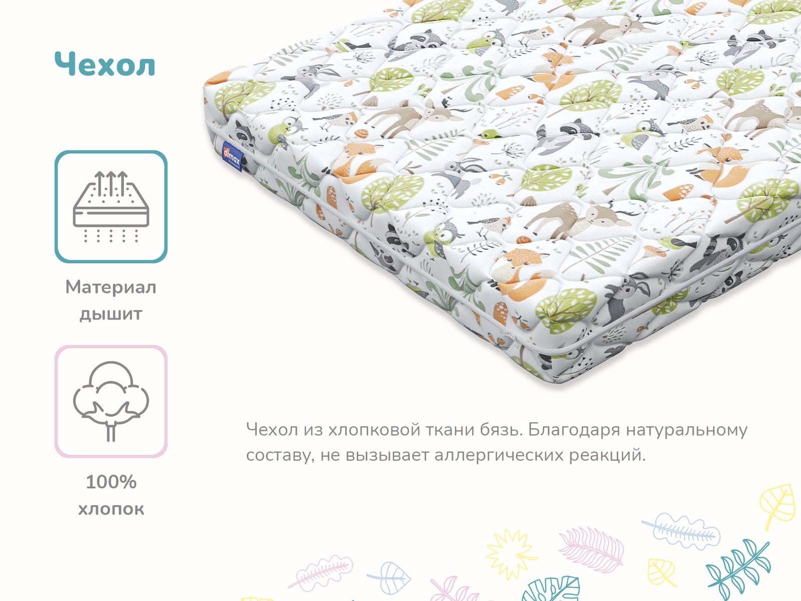 Димакс Умка – это беспружинный детский матрас с основой из ортопедической пены, дополненной кокосовой койрой. Ребёнок получит комфортную спальную поверхность на любой стадии роста и развития, а родители могут быть спокойны за правильное формирование осанки.