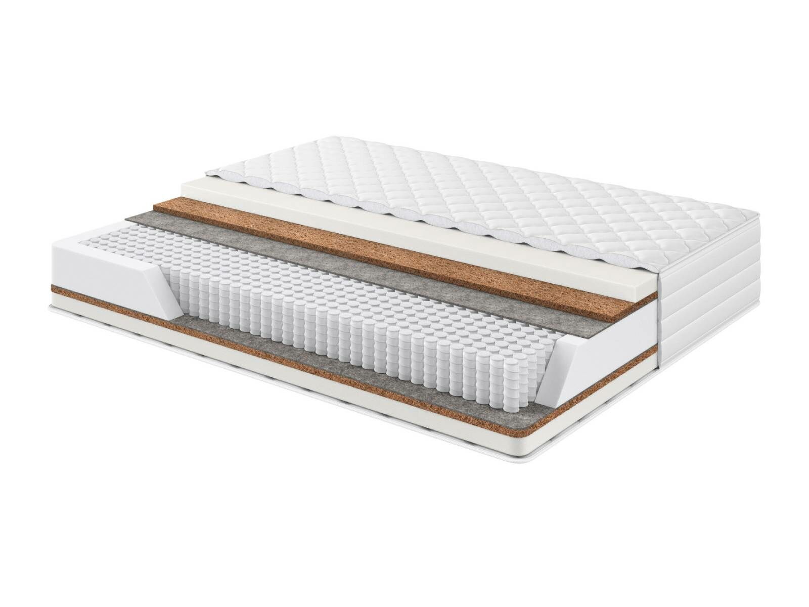 Кокосовая койра латексированная. Экологически чистый, долговечный природный материал, получаемый из межплодника ореха кокосовой пальмы, произрастающей в тропических районах Юго-Восточной Азии. Будучи натуральным материалом, койра, тем не менее, не вызывает аллергических реакций, и наоборот, выросшее под солнцем тропиков, кокосовое волокно впитало в себя огромный запас энергии, которая создает на много лет мощное благотворное биополе. В качестве наполнителя для матрасов кокосовая койра обеспечивает оптимальную упругость и долговечность матраса. Для устранения ломкости и увеличения срока эксплуатации, кокосовое волокно пропитывают латексом. На выходе получается монолитная плита: прочная и долговечная. Латексная пропитка позволяет выдерживать большие нагрузки и препятствует деформации и расслаиванию наполнителя.