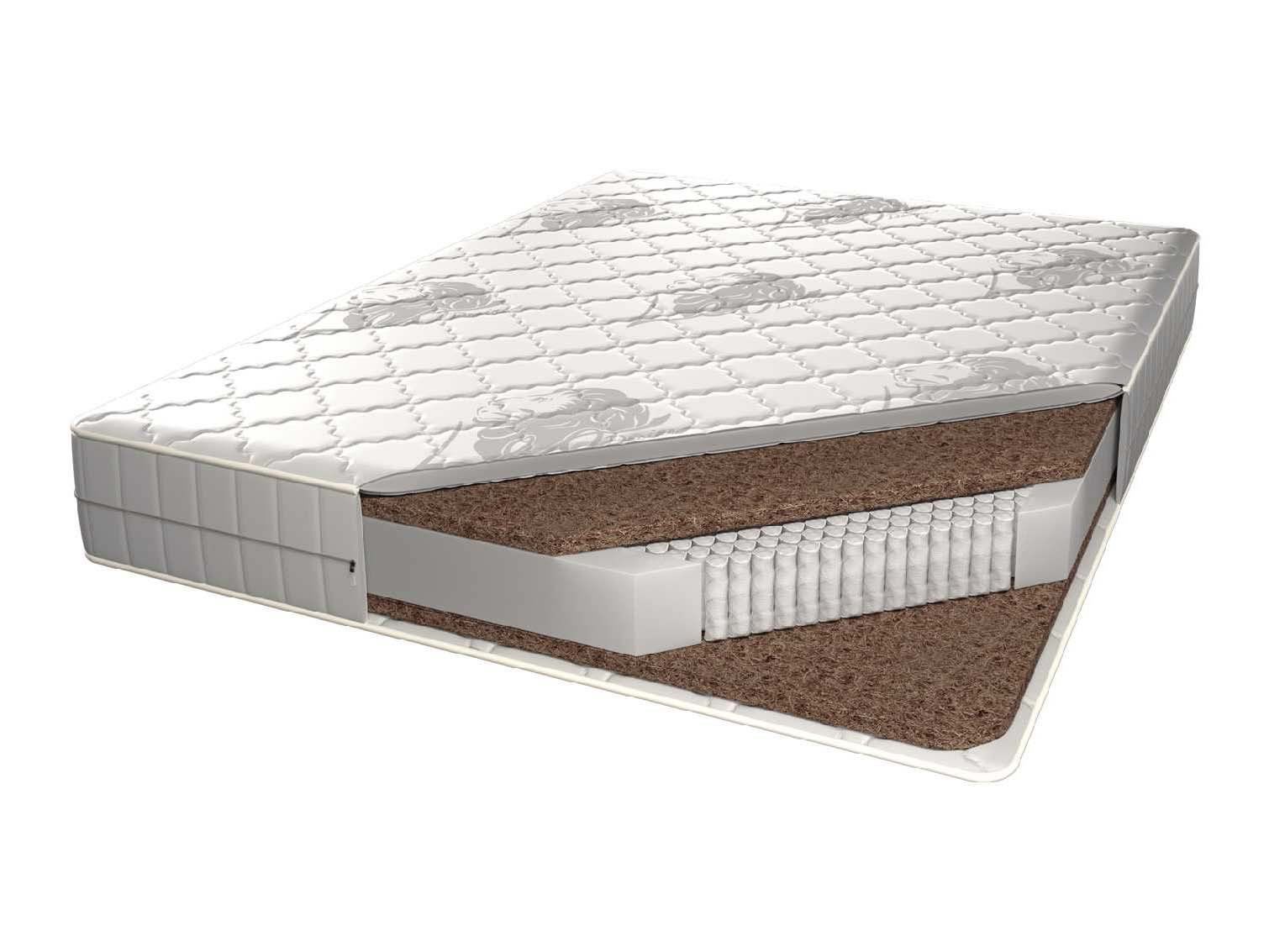 Жёсткий матрас Вена на основе блока независимых пружин. В качестве наполнителя используется кокосовая койра.