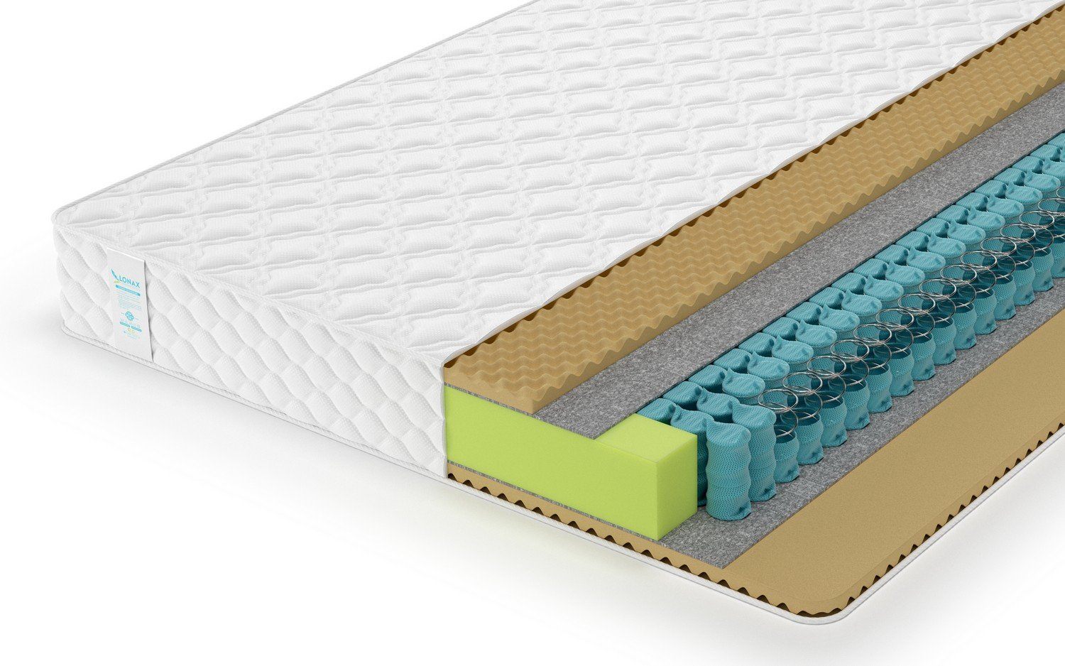 Низкая жёсткость сразу двух спальных сторон матраса достигается при помощи настилочных слоёв Меморикса. Это уникальная современная пена, которая отличается способностью нежно обволакивать фигуру. Кроме всего прочего, материал способен «запоминать» формы, поэтому справедлив относится к категории одних из самых анатомичных наполнителей.
