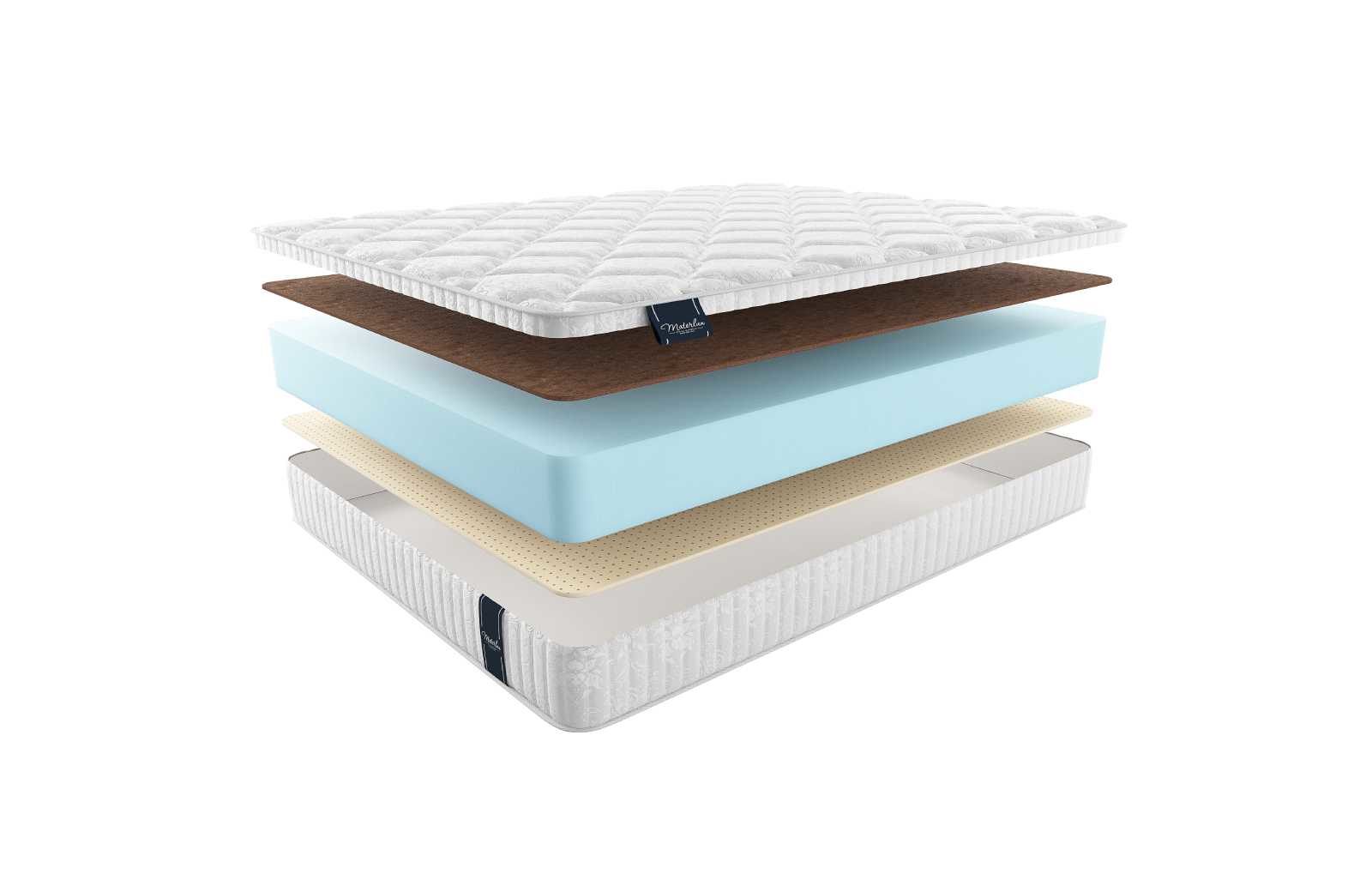 Что касается наполнения матраса, то здесь установлены три различных слоя материалов. Базовым центральным блоком выступает пена Natural Foam. Она занимает самый большой объём и забирает на себя функцию несущей панели, равномерно распределяющей нагрузку по всей поверхности матраса. Пена эластична и хорошо повторяет изгибы фигуры, чем обеспечивает высокий комфорт спальному месту.