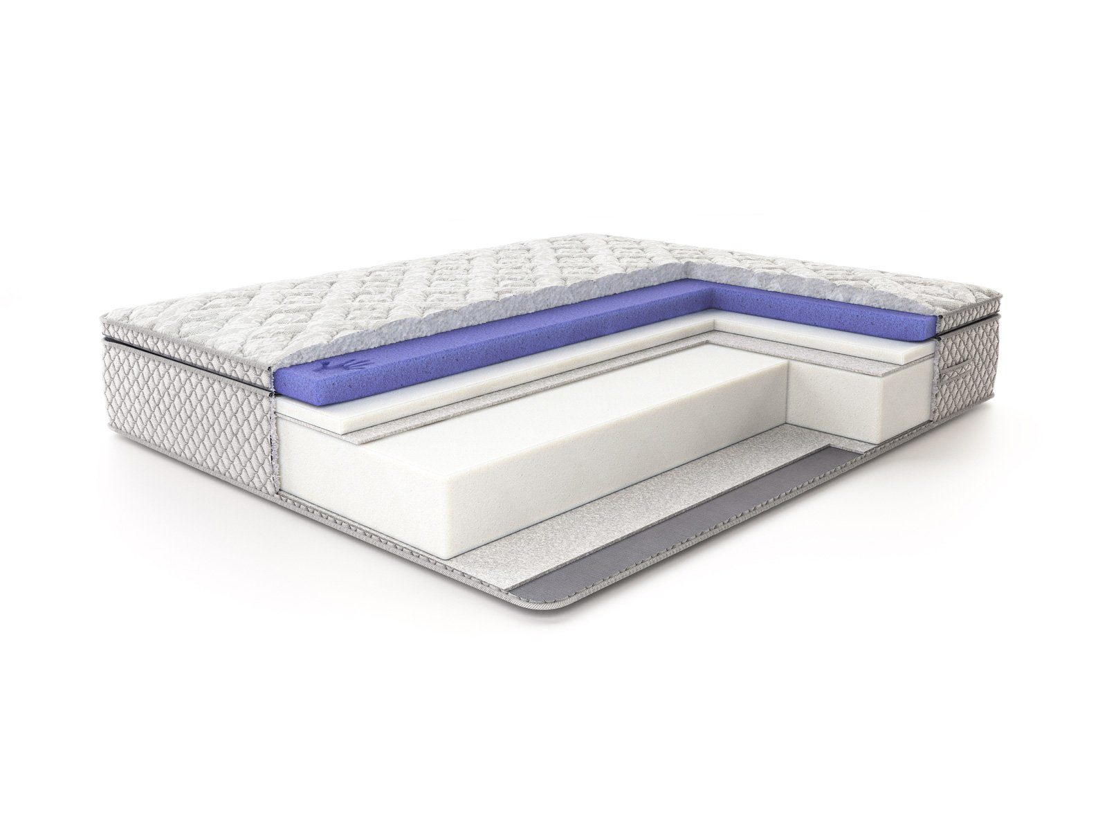 Роскошный рельефный чехол из жаккарда, простёганный по типу «слоёный пирог»: объёмное гипоаллергенное волокно холлкон 300 гр., ППУ 1 см, спанбонд — максимальный первоначальный комфорт. Чехол матраса несъемный.