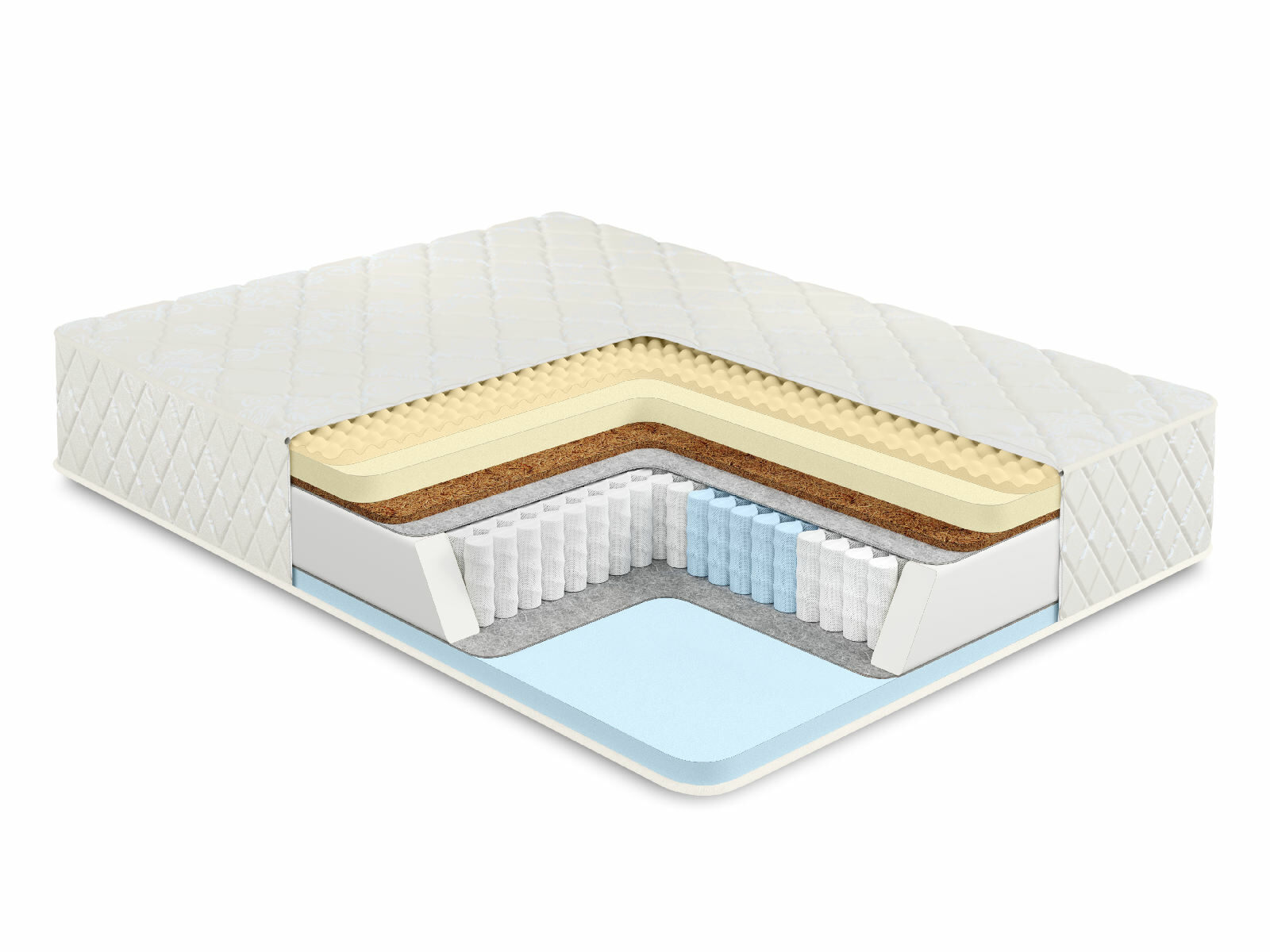 Пружинный матрас в основе которого многозональный независимый пружинный блок 1000 пружин на спальное место обеспечивает ортопедическую поддержку и комфорт во время сна. Независимые пружины подстраиваются под формы человека, потому что каждая пружина находится в отдельном кармашке и обеспечивает равномерное распределение веса.