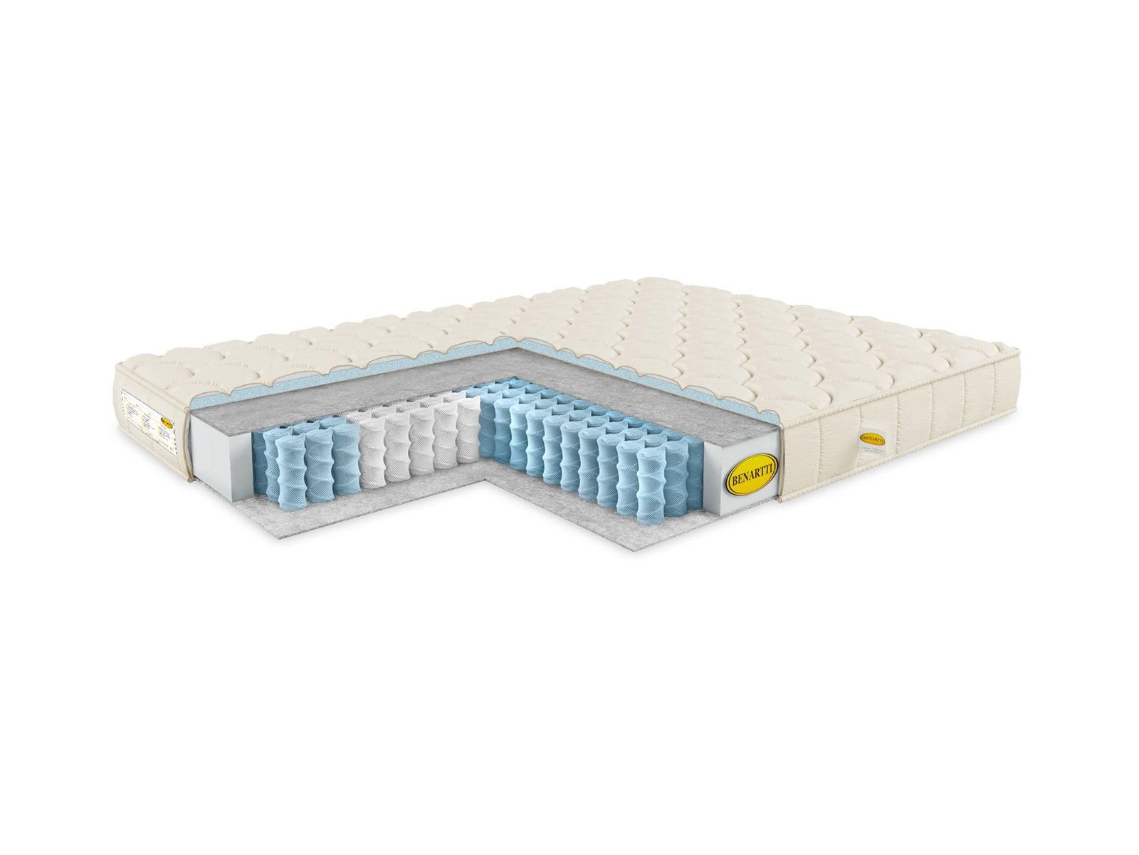 Для того чтобы модель не скрипела и внутри не было трений, каждая пружина размещается в специальном чехле из спанбонда. Такое решение не только обеспечивает тихое функционирование изделия, но и даёт пружинам возможность работать полностью независимо, что особенно важно для качественной ортопедической поддержки матраса.