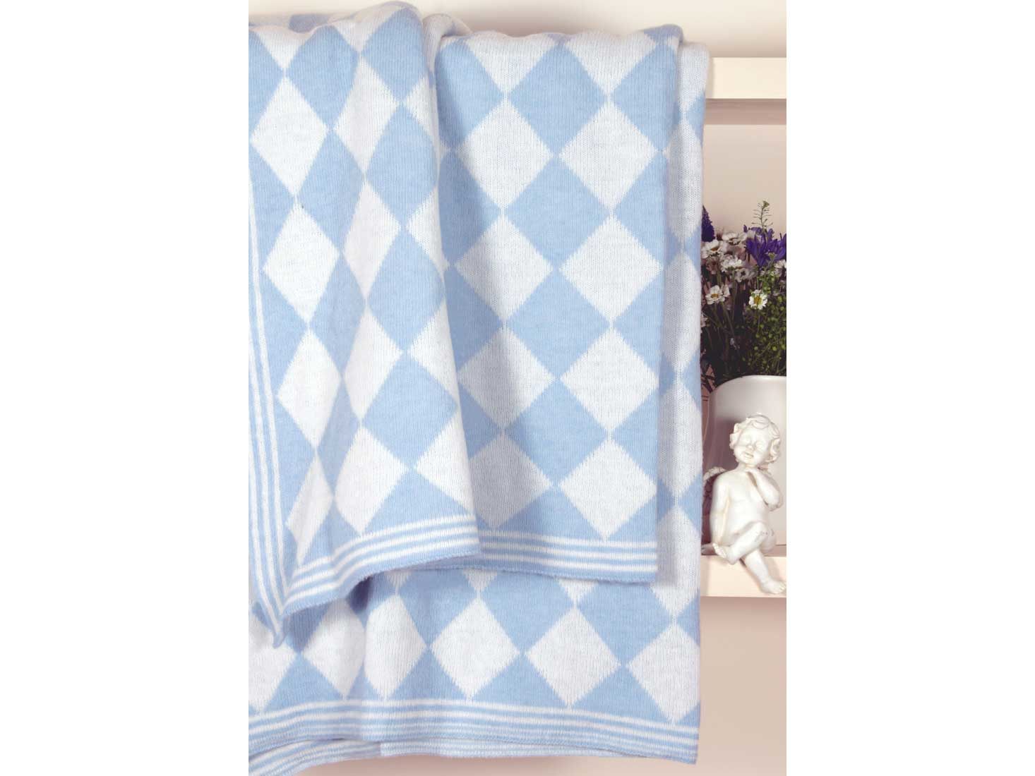 Плед IMPERIO50 мягкий, нежный теплый. Милый очаровательный рисунок в виде ромбов подойдут к любому дизайну детской. А удобный размер позволит брать такой плед с собой на прогулку.