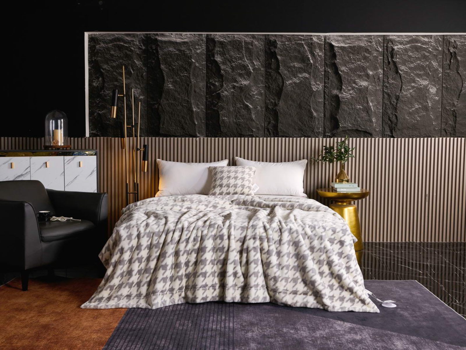 Sofi De Marko представляет вашему вниманию коллекцию Эрнесто, включающую в себя пледы и декоративные наволочки из искусственного меха с принтом «гусиная лапка».
