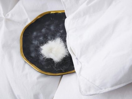 Чехол у изделий плотный, он надежно удерживает пух внутри, поэтому они не будут скатываться или колоться.
