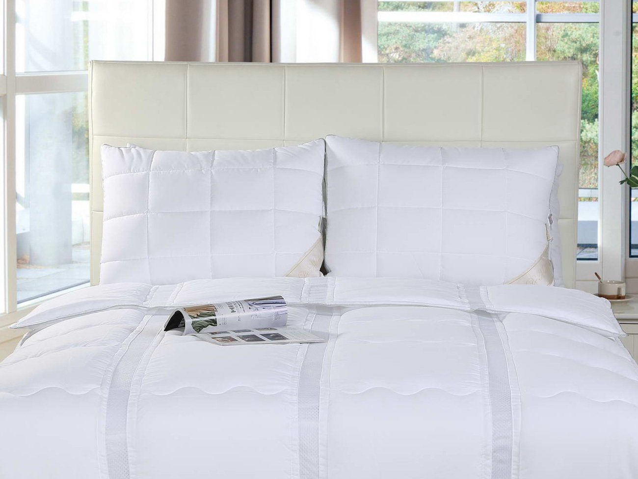 Гипоаллергенно. Не использованы синтетические красители, пропитка и обработка. Наперник снимается; стирка при 30 градусах.