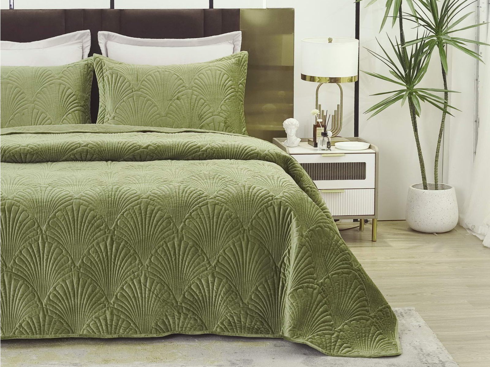 Роскошное велюровое покрывало Ариэль станет изюминкой любого интерьера, ведь оно потрясающе выглядит и приятное на ощупь. Обратите внимание на стежку покрывала – она выполнена в виде ракушек с эффектом 3D. Из-за особого плетения, велюровая ткань покрывала отражает свет и красиво переливается при различном освещении.