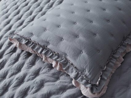 Покрывала выполнены в десяти оттенках, они подойдут для различных интерьеров, объединяет коллекцию потрясающее качество и приятный внешний вид. Изделия декорированы рюшами по краю, что подчеркивает из красоту и изысканность.