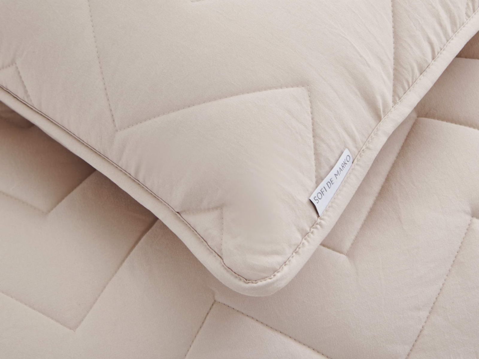 Выбрать покрывало так же важно, как выбрать обои в гостиную или плитку в ванную комнату. В современном мире при огромном разнообразии товаров порой бывает сложно остановиться на конкретном стиле или цвете. Если у вас возникла такая проблема, Sofi De Marko рекомендует приобрести покрывало с наволочками Робби. Эта легкая модель покрывала украшена изящным геометрическим узором. Изделие выполнено в семи оттенках: пепельная роза, крем, чайная роза, беж, мокко, шоколад, серебро. Такая цветовая гамма подойдет большинству современных интерьеров. Кроме того, покрывало возможно использовать в качестве летнего одеяла.