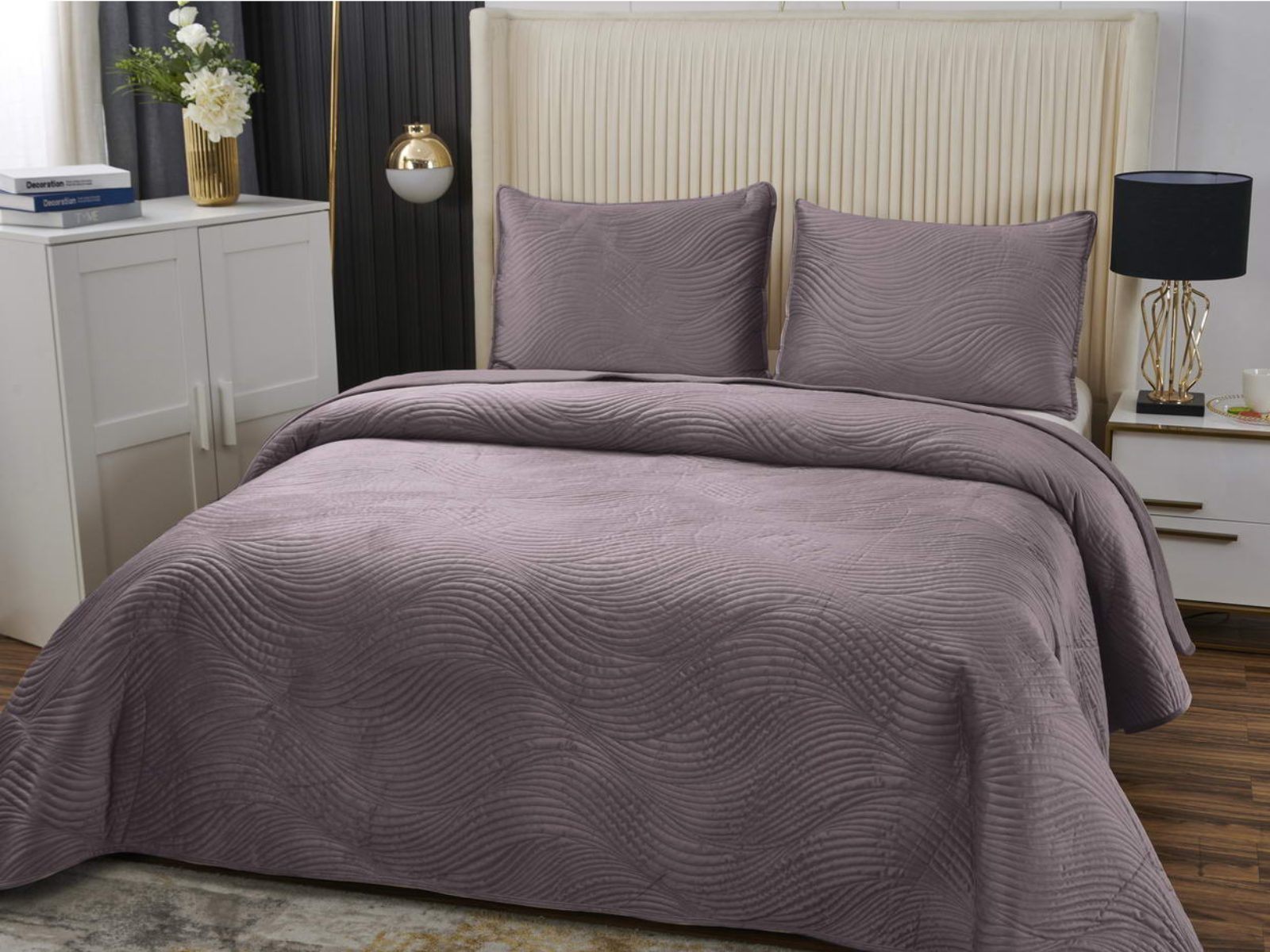 Традиционно в японском саду камней линии на песке символизируют отсутствие хаоса и спокойствие. Такой плавный узор напоминает размеренные потоки воды, которые оказывают на психику благоприятный эффект. Изящное покрывало Жизель с рисунком в виде подобных линий поможет обрести умиротворение, ведь в современном мире так важно уметь привести мысли в порядок. Помимо положительного воздействия на нервную систему, рисунок в виде волны придаст изысканности и утонченности Вашему интерьеру.