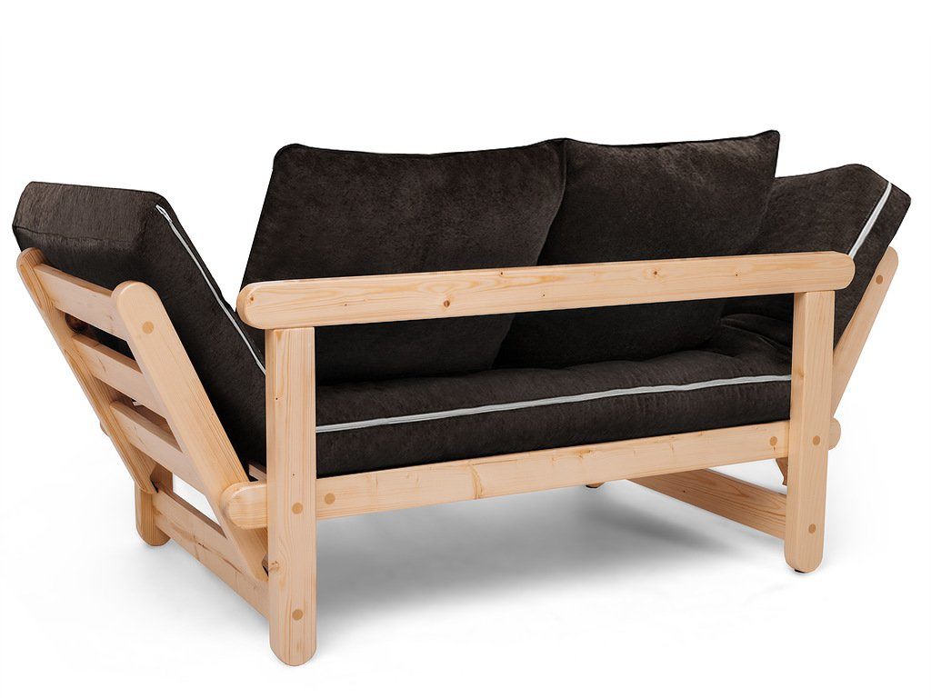 Каркас кушетки изготавливается из массива сосны. Откидные подлокотники имеют два положения, что позволяет, с комфортом разместится двум человекам.