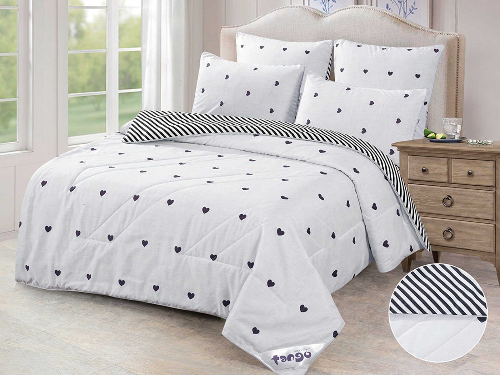 В данный комплект вместо пододеяльника входит облегченное одеяло. Комплект подойдет тем, кто устал от мучительного натягивания пододеяльников на одеяло.