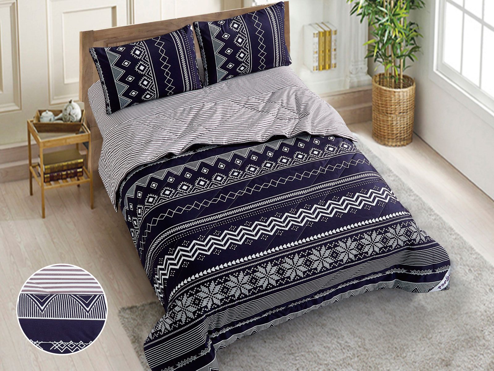 В данный комплект вместо пододеяльника входит облегченное одеяло. Комплект подойдет тем, кто устал от мучительного натягивания пододеяльников на одеяло.